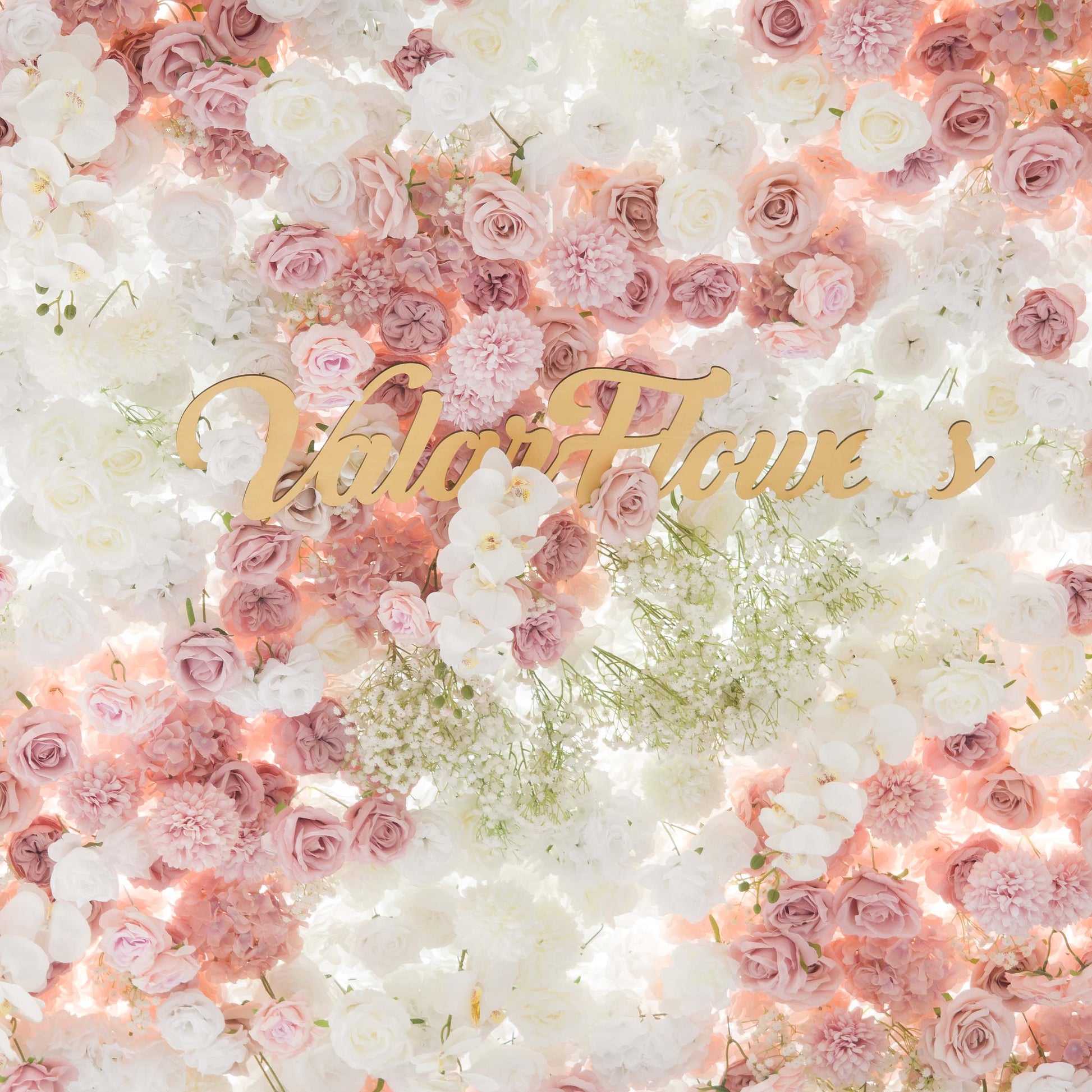 Transform your event space into a romantic haven with this exquisite artificial flower wall backdrop. Featuring a delicate blend of blush pink and white roses, this backdrop adds a touch of elegance and romance to any celebration. The soft color palette and intricate floral arrangement create a dreamy and sophisticated ambiance, making it an ideal choice for weddings and special events.